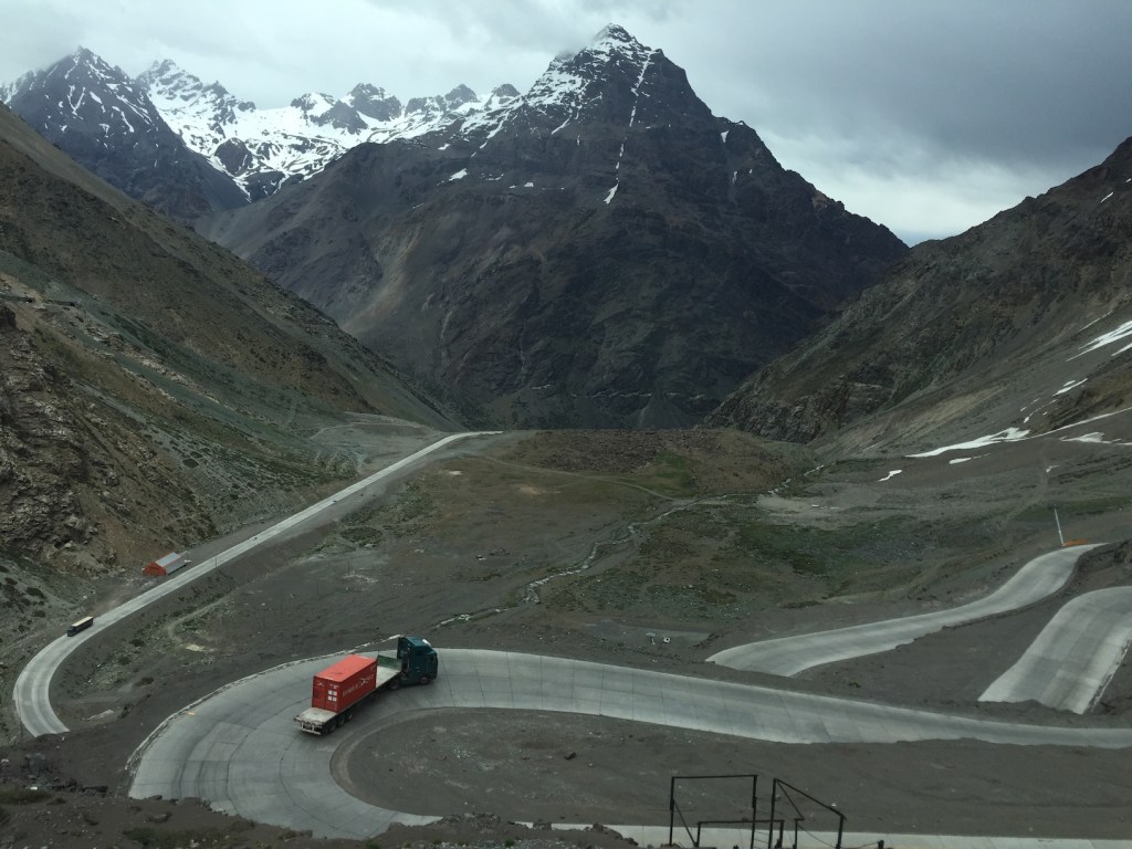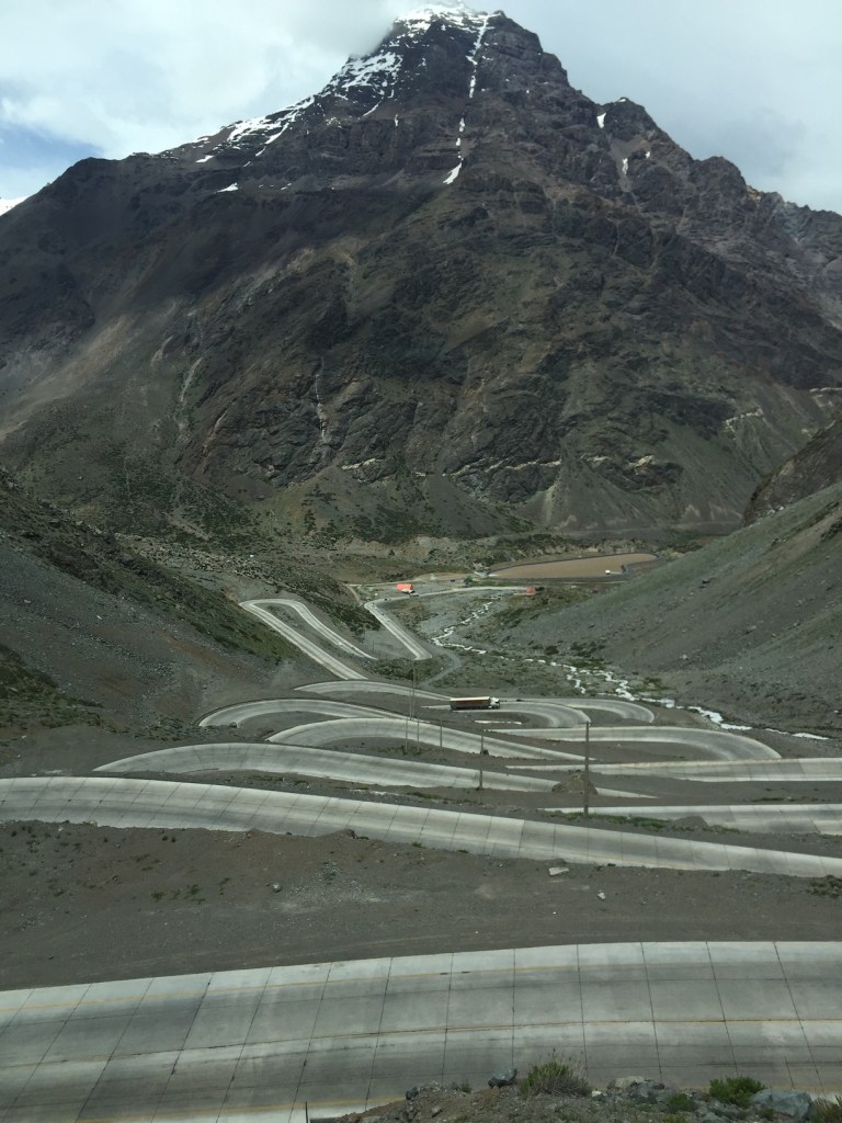 Ich bin auf der verzweifelten Suche nach dem Busbahnhof in Santiago de Chile. Eigentlich war alles ganz wunderbar geplant, wenn ich nur die winzige Tatsache nicht übersehen hätte, dass die Metro-Haltestelle „Estación Central“ direkt am Zugbahnhof liegt. Der Busbahnhof ist jedoch irgendwo anders. Irgendwo in der Nähe! Der Taxifahrer will mich nicht mitnehmen. Ist zu kurz. Ich frage mich durch und lande schließlich am Regionalbusbahnhof. So ein Mist, von hier fahren auch keine internationalen Busse! Die Zeit läuft mir davon. 15 Minuten bis Abfahrt. Immerhin erhalte ich am Schalter meines Busunternehmens eine hilfreiche Auskunft. Der Fernbusbahnhof liegt ca. 5 Fußminuten entfernt. Ich quetsche mich durch die Menschenmassen und renne. 12 Minuten später setzt sich der gelbe EL RAPIDO-Bus in Richtung Mendoza, Argentinien in Bewegung und ich atme auf. Geschafft! Die Fahrt dauert ca. 10 Stunden und führt durch beeindruckende chilenische bzw. argentinische Landschaften und einige Höhenkilometer. In engen Serpentinen schraubt sich der Bus die Passstraßen hinauf. Ein Blick aus dem Fenster gewährt den direkten Blick nach unten. Es geht steil bergab! „Das ist keine Fahrt für Menschen mit Höhenangst“, denke ich mir etwas angespannt. Plötzlich tauchen schneebedeckte Gipfel am Horizont auf und lenken mich von meinen düsteren Gedanken ab. Majestätische Berglandschaften und tiefe Schluchten ziehen vorbei. Wir sind nun auf 3.186 Meter Höhe und es beginnt zu schneien. Hier irgendwo liegt die argentinische Grenze. Ausgerechnet jetzt müssen wir alle den Bus verlassen und stehen mit schlotternden Knien am Grenzhäuschen. Warten. Stempel. Warten. Stempel. Und schnell wieder ins Warme. Wir sind in Argentinien! Nun gehts ohne weitere Stopps direkt nach Mendoza…