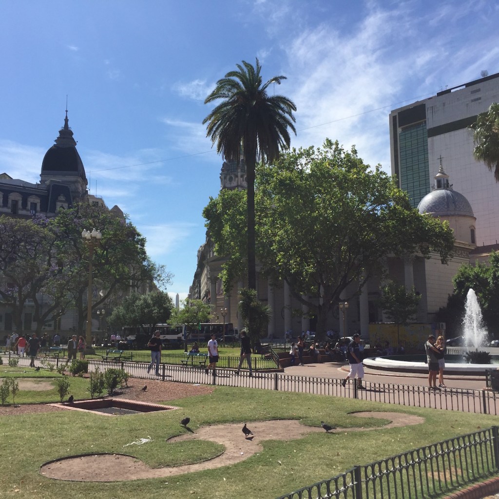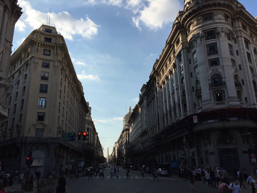 Nach einigen Tagen im beschaulichen Mendoza trat ich erneut eine Busfahrt an und machte mich auf den 22-stündigen Weg in die argentinische Hauptstadt. Das klingt lang, das ist lang und trotzdem war es eine echt tolle Fahrt: Ich saß in einem riesigen, schwarzen Ledersessel, der sich fast komplett nach hinten verstellen ließ. Ein Kissen und eine Decke lagen bereit und per Tablett wurden Tee, Wein, ein warmes Abendessen, Snacks und ein Frühstück serviert… so lässt es sich aushalten! In Buenos Aires selbst stand ein umfangreiches Touren-Programm auf dem sehr touristisch angehauchten Plan. Ich nahm gleich an zwei „Free Walking Tours“ teil, da die Stadt einfach zu groß für eine ist und konnte so all die berühmten Sehenswürdigkeiten abhaken: das Teatro Colón, den Hafen Puerto Madero, den Friedhof Recoleta, das moderne Kunstmuseum MALBA und natürlich die breiteste Straße der Welt, die Avenida 9 de Julio mit dem Obelisk von Buenos Aires. Diese Straße ist etwa 140 Meter breit und man benötigt als Fußgänger oft mindestens zwei Minuten zur Überquerung, da alle Kreuzungen Ampeln haben. (Ziemlich anstrengend auf die Dauer, zumal ich die Straße täglich mehrmals überqueren musste, um zu meinem Hostel zu gelangen.) Einige dieser Höhepunkte folgen nun in Bildern: