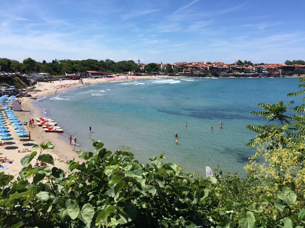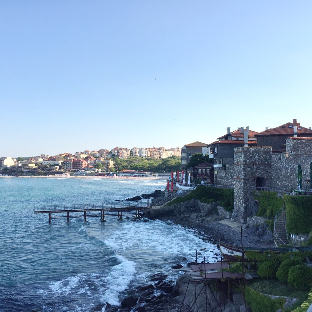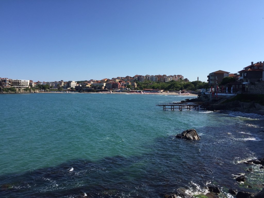 Eines der letzten Ziele unserer Bulgarientour führte uns ans Schwarze Meer, wo wir einige sehr entspannte Tage -ohne große Aktivitäten, aber mit viel gutem Essen- verbrachten. Wir entschieden uns für das kleine Städtchen Sozopol, in dem es deutlich ruhiger zuging als in den touristischer geprägten Orten rund um den Sonnen- und Goldstrand. Das im Voraus gebuchte Hotel befand sich in der Altstadt und es dauerte ein Weile, bis wir dort ankamen. Die dortigen Straßen waren allesamt sehr schmal, kurvig und gepflastert. Unser Navi war hoffnungslos überfordert und jedes Mal, wenn das Ziel in Reichweite kam, endete die Fahrt in einer Sackgasse oder einem schmalen Pfad mit Meereszugang. Ich wollte zwar unbedingt ins Wasser, aber vielleicht nicht unbedingt mit Auto und Gepäck. Einige holprige Altstadtumrundungen später – manchmal funktioniert das Navi im Kopf tatsächlich besser – erreichten wir schließlich doch noch unsere Unterkunft. Diese schien sich seit den 60er Jahren nicht mehr verändert zu haben, belohnte uns aber mit einem traumhaften Meerblick vom Balkon aus.