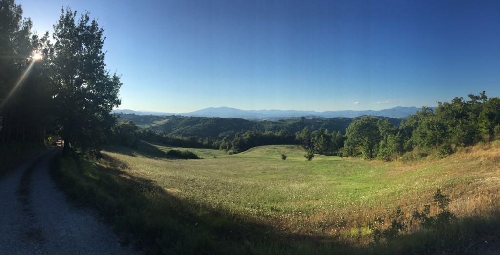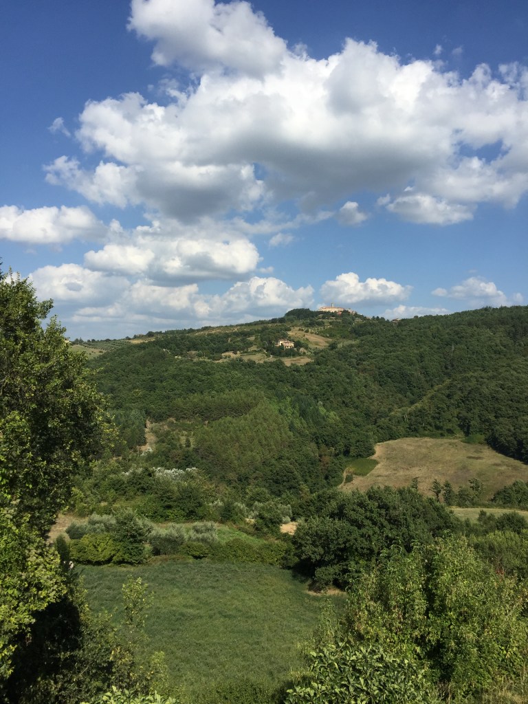 Das Jahr 2016 geht zu Ende und es heißt erneut Abschied nehmen. Auch von Arcalena. Seit über einem Jahrzehnt war die Localitá Arcalena in der Provinz Perugia in Umbrien unser Feriendomizil. Sie liegt etwas einsam und versteckt am Ende einer holprigen weißen Straße inmitten schönster Hügellandschaften des Tibertals, ca. 400 Meter über dem Meeresspiegel. Seit 1998 haben wir viele abenteuerliche (besonders in der Anfangszeit) und entspannende (nach grundlegenden Renovierungs- und Sanierungsarbeiten) Familienurlaube hier verbracht. Auf dem 269 Meter höhergelegenen Hügel gegenüber liegt der im 11. Jahrhundert entstandene Ort Monte Santa Maria Tiberina und eröffnet herrliche Blicke gen Osten.