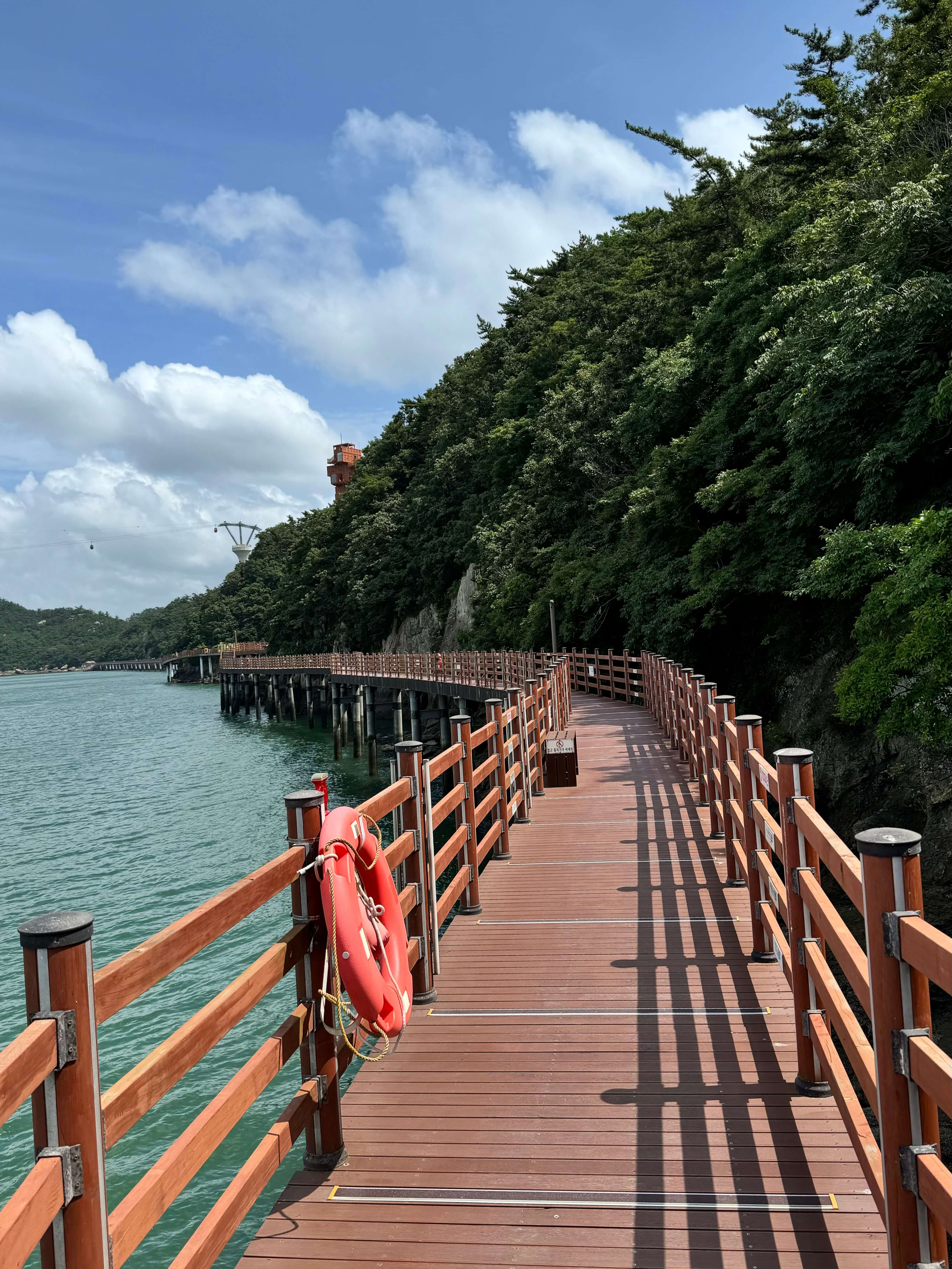 Nach einem Tag voller Entdeckungen entschieden wir uns am nächsten Morgen für ein besonderes Highlight in Mokpo: die Fahrt mit der Mokpo Marine Cable Car über den Yudalsan Mountain. Die Aussicht war tatsächlich atemberaubend, und die etwa 3,23 Kilometer lange Seilbahnstrecke, die als die längste Seilbahn in Südkorea über dem Meer gilt, brachte uns zur Gohado Insel. Dort schlenderten wir entlang der Holzstege der Küstenpromenade und entdeckten am Ende eine beeindruckende Drachenskulptur. Besonders spannend war auch das Gohado Observatory, wo 13 Panokseon-Modelle gestapelt sind – traditionelle Kriegsschiffe, die in der Myeongnyang-Schlacht eingesetzt wurden. Das Observatorium dient nicht nur als Aussichtspunkt, sondern auch als Bildungsstätte, die die Geschichte der Schlacht und den Geist Chungmugongs ehrt.