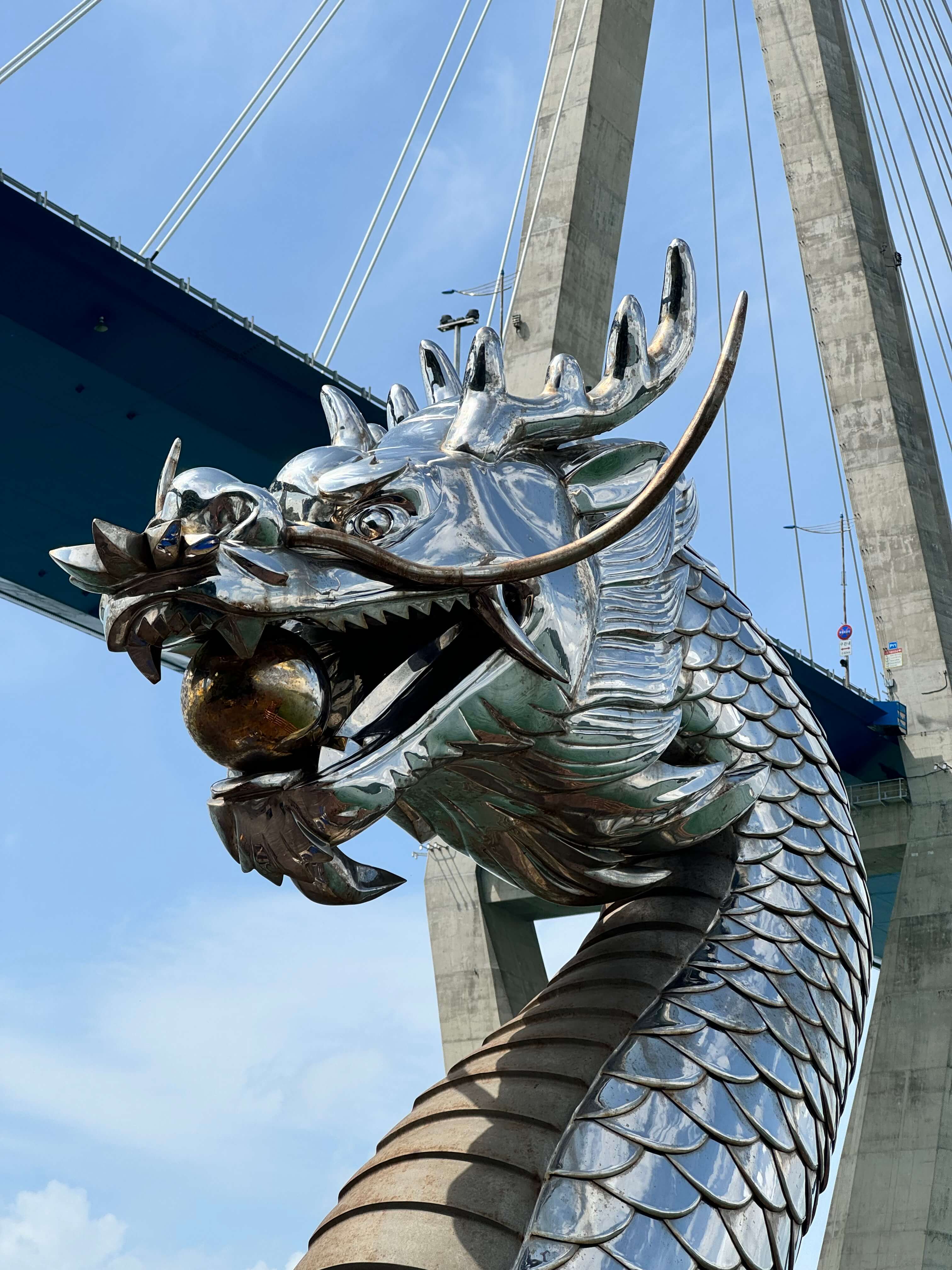 After a day of discoveries, we chose a special highlight for our last morning in Mokpo: a ride on the Mokpo Marine Cable Car over Yudalsan Mountain. The view was truly breathtaking, and the 3.23-kilometer-long cable car route, the longest sea cable car in Korea, brought us to Gohado Island. We strolled along the boardwalk and discovered an impressive dragon sculpture. The Gohado Observatory, where 13 stacked Panokseon models (traditional warships used in the Battle of Myeongnyang) are displayed, was particularly interesting. The observatory serves as both a viewpoint and an educational facility that honors the battle’s history and the spirit of Admiral Yi Sun-sin.
