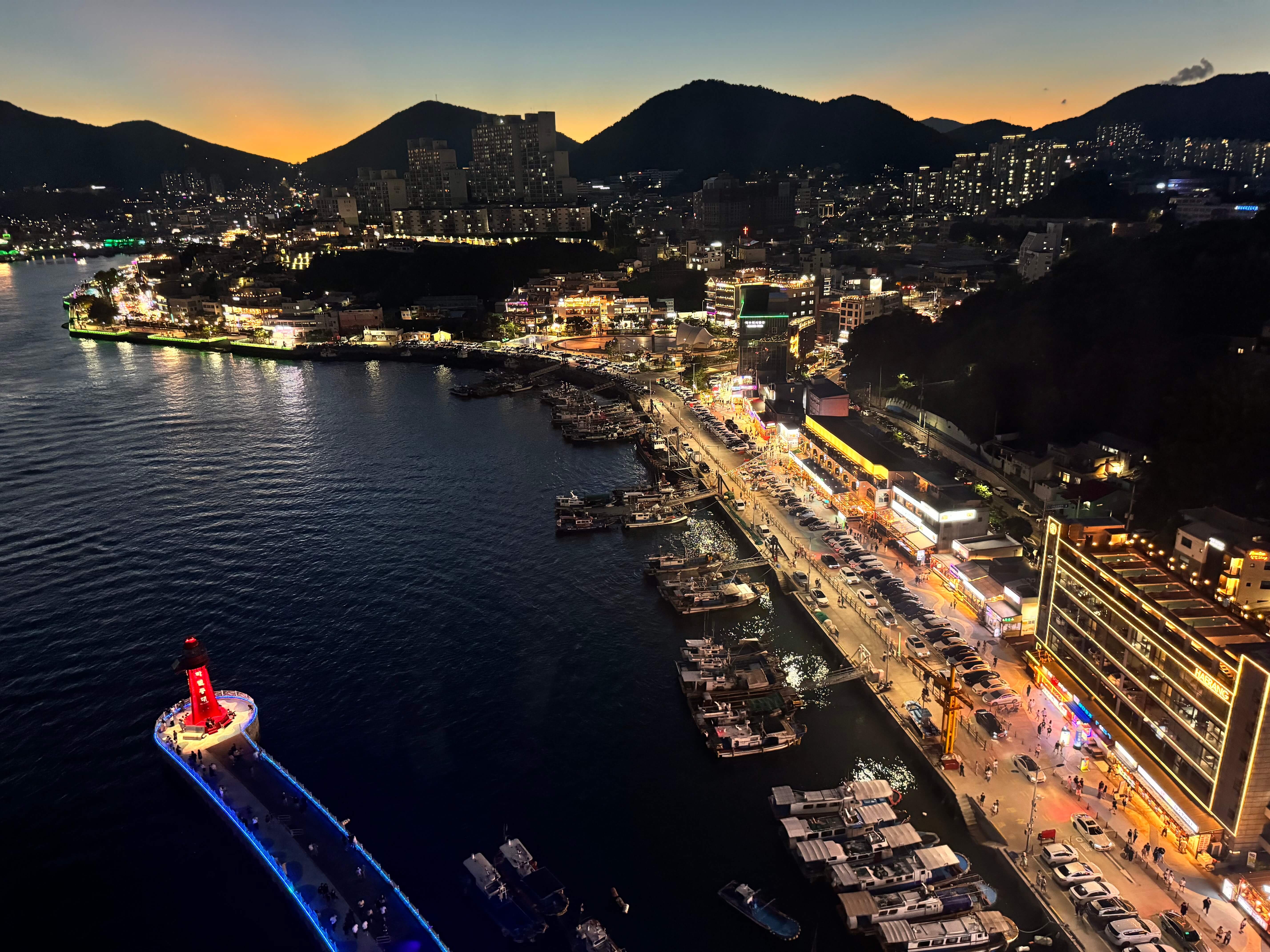 Another highlight was the ride on the Yeosu Cable Car from Jasan Station at dusk. The return trip in the dark, with the city and the bridge beneath us glowing in vibrant colors, was simply magical.