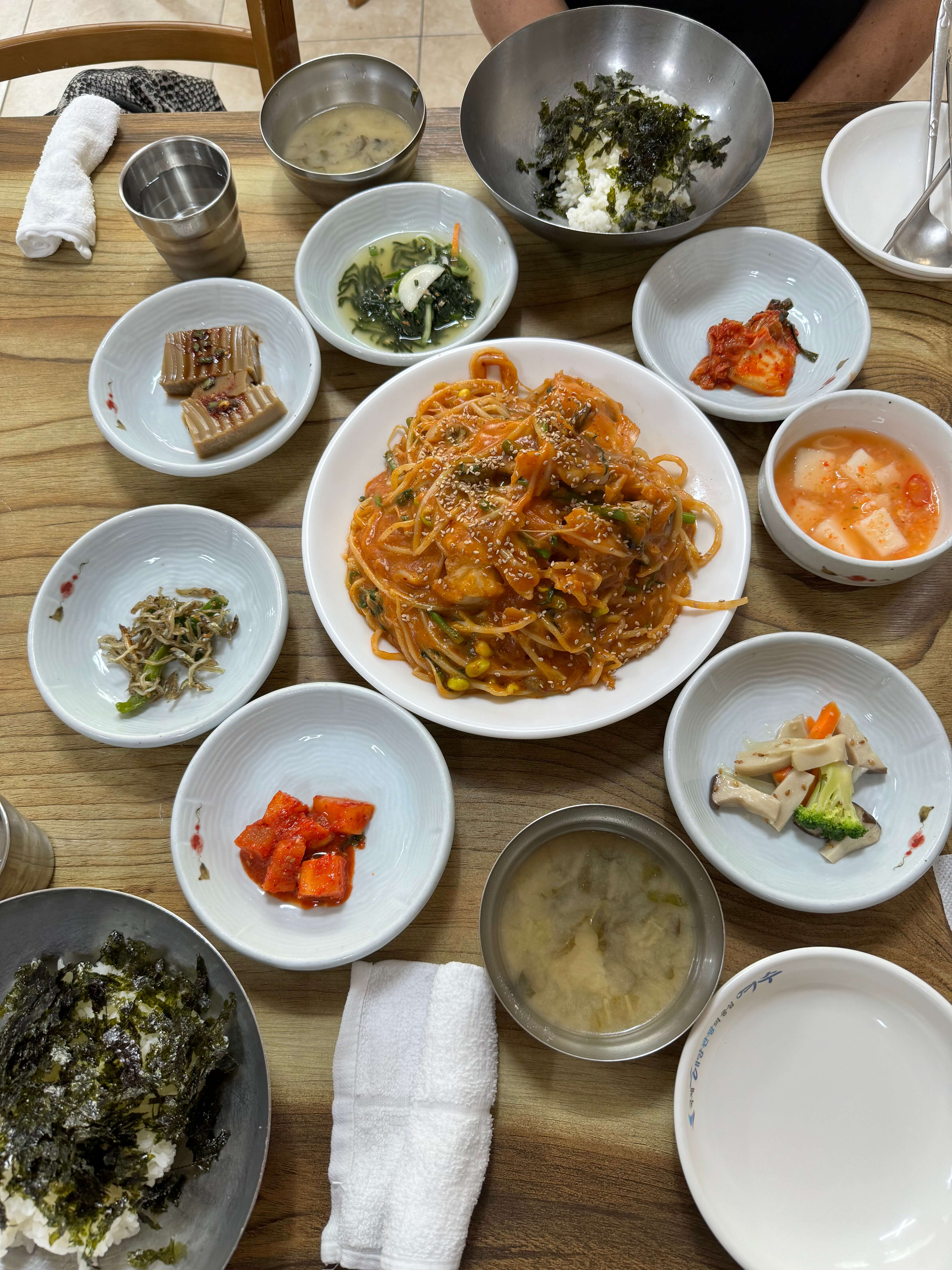 After our stay in Seoul, we took the KTX high-speed train from Seoul Station to Mokpo Station in the south. The nearly three-hour ride was smooth and comfortable. Upon arrival in Mokpo, we quickly noticed that the city wasn’t particularly touristy. In the rain, it felt gray, deserted, and unwelcoming. Even the vegetarian restaurant we were looking forward to was closed — and remained so during our further attempts.