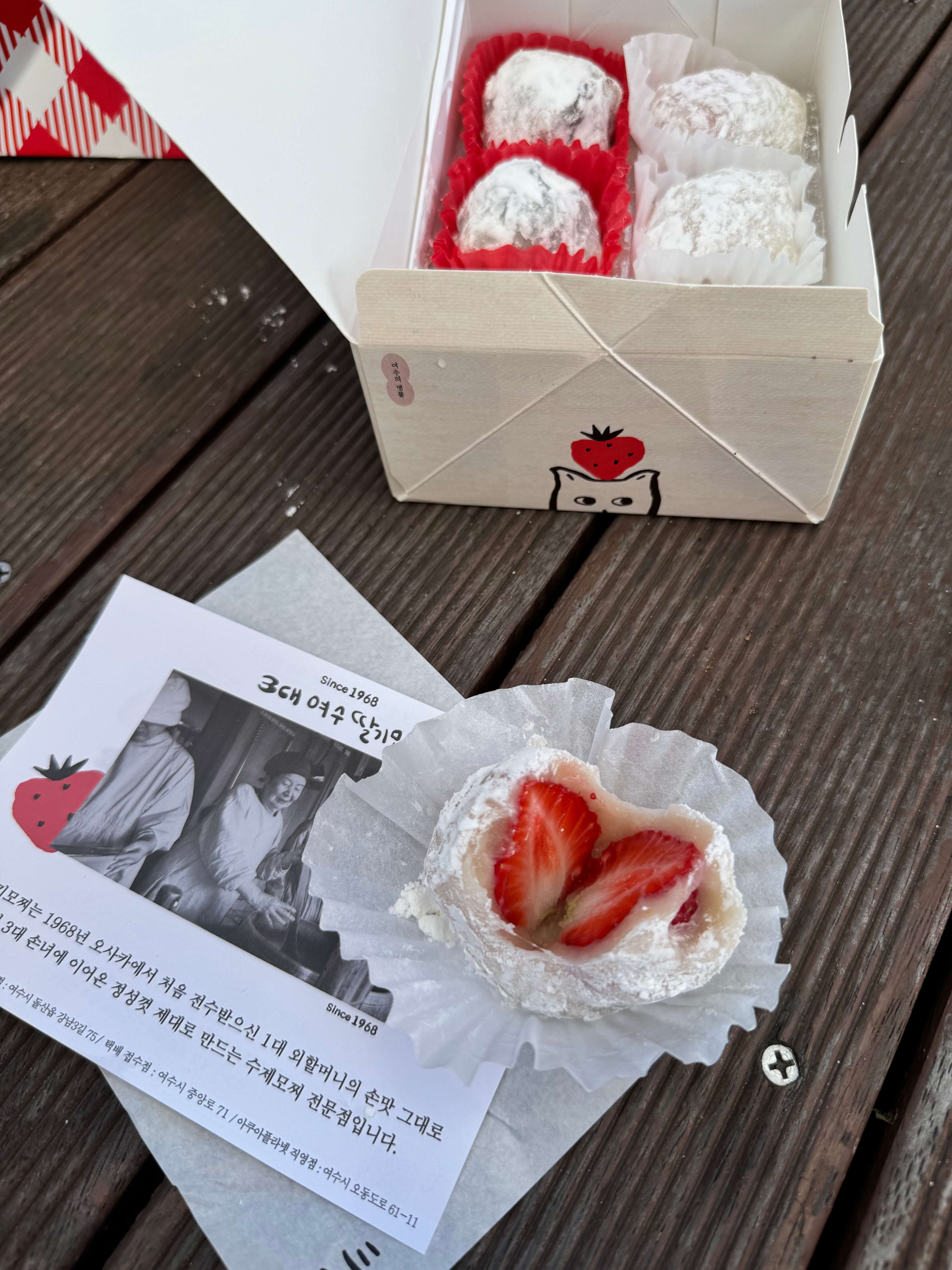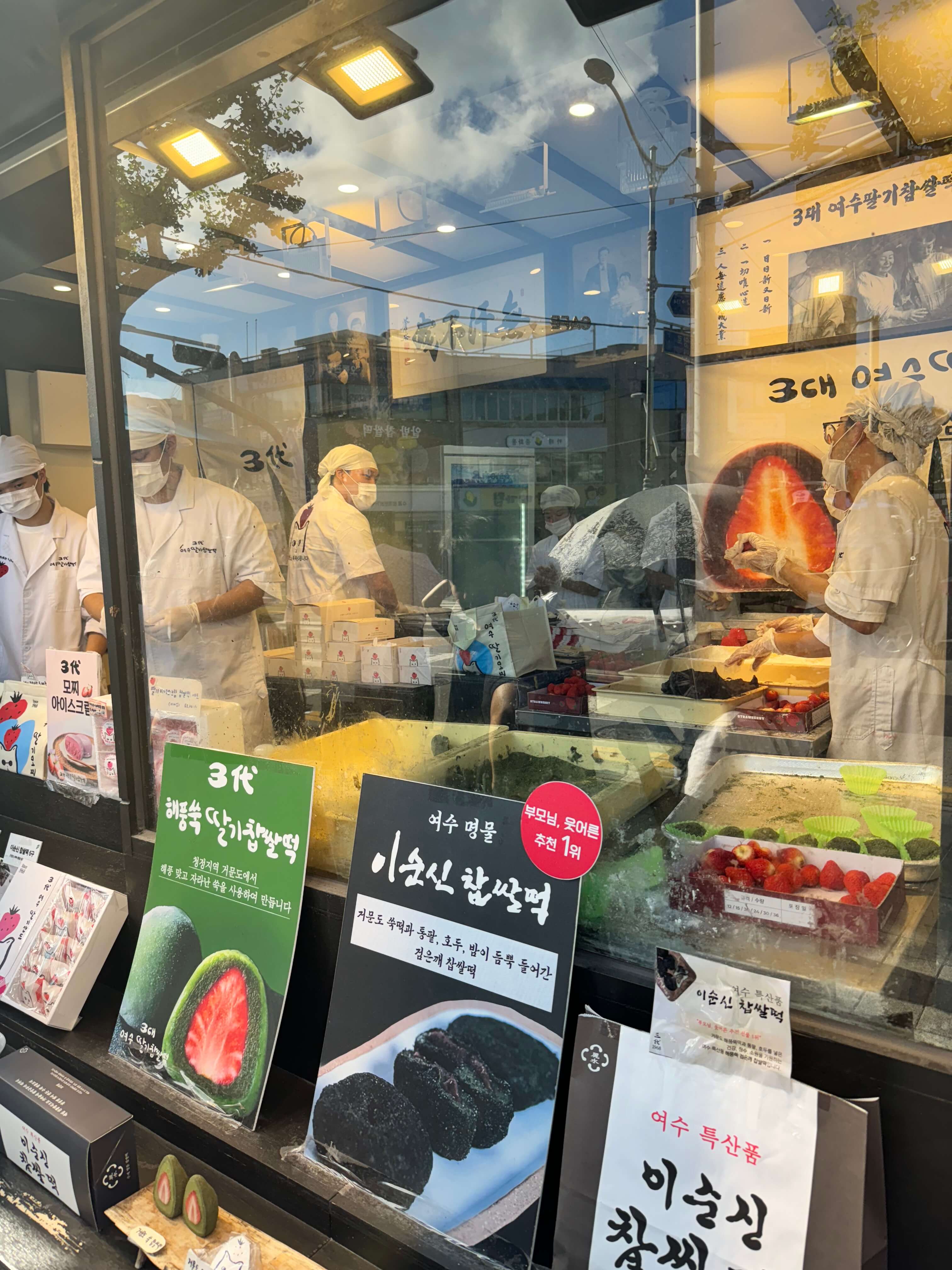 Of course, we couldn’t miss a visit to Yi Sun Shin Square, where we indulged in delicious strawberry mochis at the Yeosu Strawberry Mochi store (여수딸기모찌 본점) — a sweet reward along the way. We made a quick visit to Odongdo Island on our departure day. The island is known for its camellia flowers, a symbol of Yeosu, and it houses over 190 rare plants as well as impressive rock formations like Yonggul Cave and Kokkiri Rock. Our last—and unfortunately gray—day was spent enjoying the peaceful atmosphere and views from the Odongdo Lighthouse.