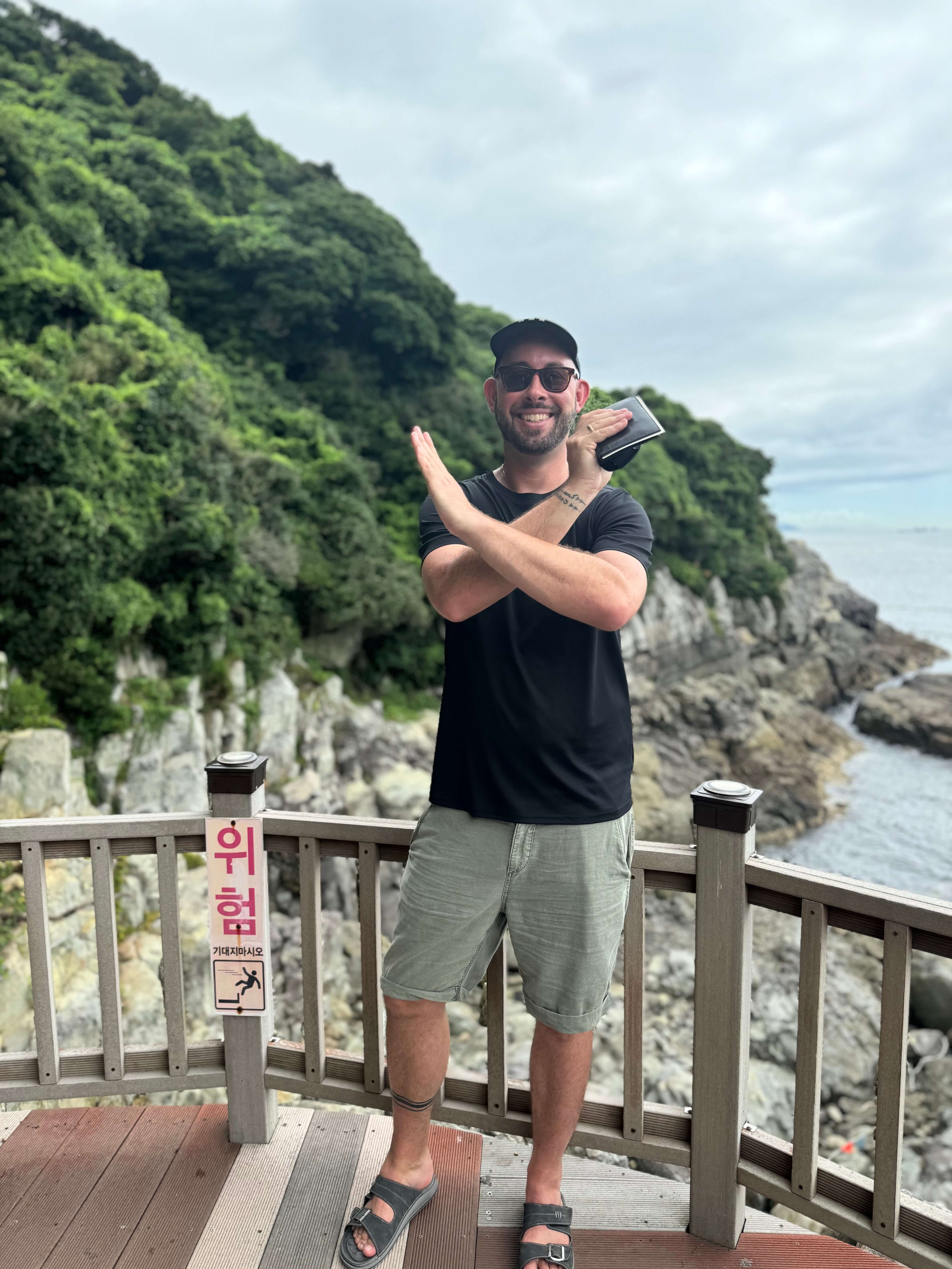 Am nächsten Tag fuhren wir mit der Buslinie 116 zum Singihang Port, der ebenfalls auf der Insel Dolsando liegt. Ein echter Geheimtipp! Von dort nahmen wir die Fähre nach Geumodo und wanderten durch den Dadohaesang Nationalpark. Diese Wanderung war eine der herausforderndsten unserer Reise: steile Anstiege, dschungelartige Vegetation, Moskitoschwärme und unerbittliche Hitze machten uns zu schaffen. Letztlich mussten wir die Wanderung abbrechen, da es einfach zu anstrengend wurde und kehrten zurück. Später stellten wir fest, dass es besser gewesen wäre, dem Taxifahrer zu folgen, der uns zum Hamgumi Village hätte bringen können – dort wären die Wanderwege entspannter gewesen und hätten (noch) spektakulärere Ausblicke geboten.